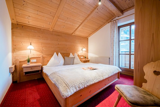 Zeitloses Fichtenholz und naturfarbene Stoffe machen das Appartement „Wolferl“ zu einem kuscheligen Ort voller Wärme. Im obersten Stock gelegen vermittelt die Mansardenwohnung einen besonderen Charme.
