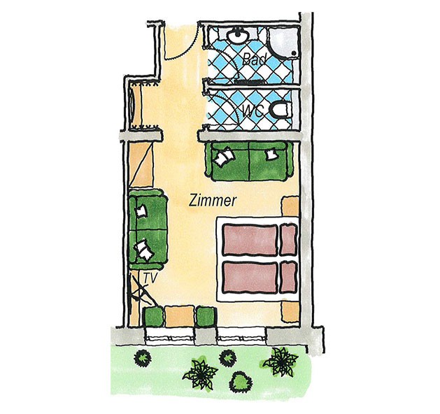 Bettwäsche, Handtücher, HD Flat-TV, WLAN, Safe, Kühlschrank